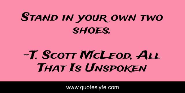 "T. Scott McLeod, All That Is Unspoken Quotes." Quoteslyfe.com, 2025. Fri. 05 Dec. 2025. <https://www.quoteslyfe.com/quote/Stand-in-your-own-two-shoes-200929>.