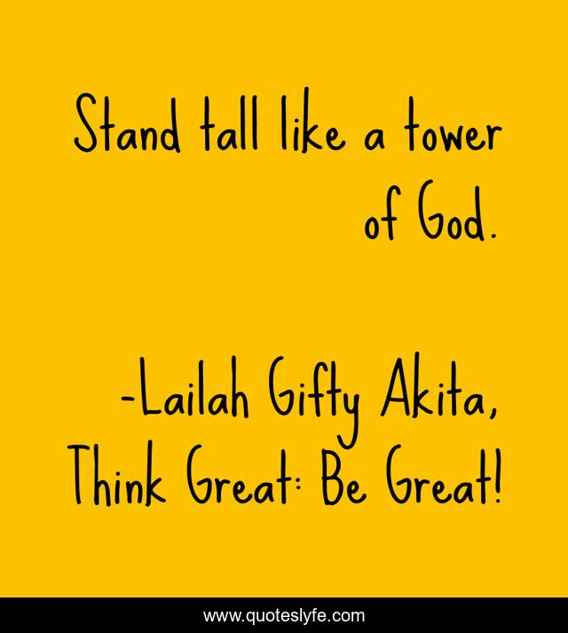 "Lailah Gifty Akita, Think Great: Be Great! Quotes." Quoteslyfe.com, 2025. Sat. 06 Dec. 2025. <https://www.quoteslyfe.com/quote/Stand-tall-like-a-tower-of-God-94925>.