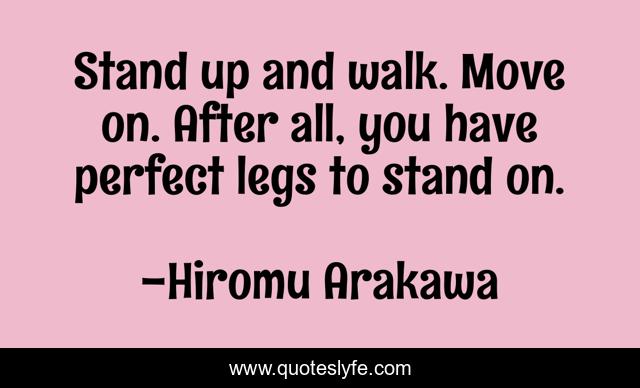 This page presents the quote "Stand up and walk. Move on. After all, you have perfect legs to stand on.". Author of this quote is Hiromu Arakawa. This quote is about enthusiasm, inspirational,.
