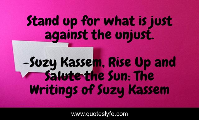 "Suzy Kassem, Rise Up and Salute the Sun: The Writings of Suzy Kassem Quotes." Quoteslyfe.com, 2025. Fri. 05 Dec. 2025. <https://www.quoteslyfe.com/quote/Stand-up-for-what-is-just-against-10073>.