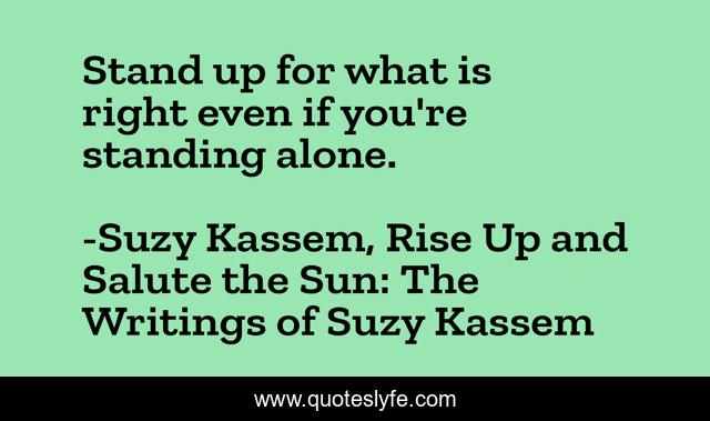 "Suzy Kassem, Rise Up and Salute the Sun: The Writings of Suzy Kassem Quotes." Quoteslyfe.com, 2025. Fri. 05 Dec. 2025. <https://www.quoteslyfe.com/quote/Stand-up-for-what-is-right-even-10221>.