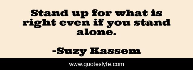 This page presents the quote "Stand up for what is right even if you stand alone.". Author of this quote is Suzy Kassem. This quote is about justice, peace, truth,.