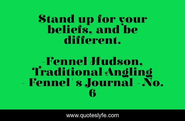 This page presents the quote "Stand up for your beliefs, and be different.". Author of this quote is Fennel Hudson, Traditional Angling - Fennel's Journal - No. 6. This quote is about different, courage, unique, individuality,.