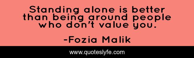 This page presents the quote "Standing alone is better than being around people who don't value you.". Author of this quote is Fozia Malik. .