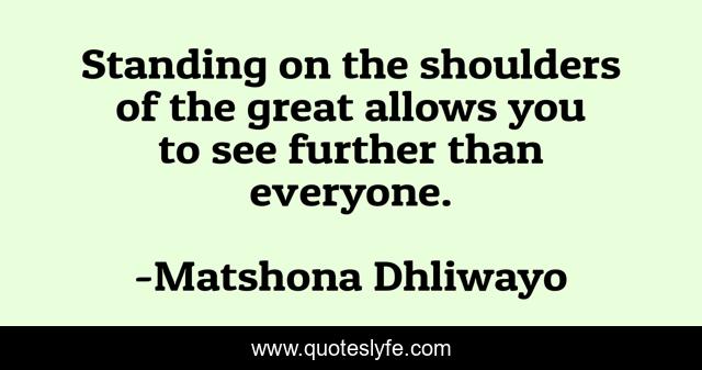 "Matshona Dhliwayo Quotes." Quoteslyfe.com, 2025. Mon. 08 Dec. 2025. <https://www.quoteslyfe.com/quote/Standing-on-the-shoulders-of-the-great-109046>.