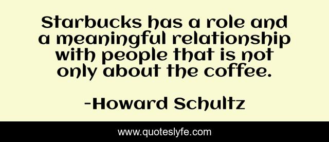 This page presents the quote "Starbucks has a role and a meaningful relationship with people that is not only about the coffee.". Author of this quote is Howard Schultz. This quote is about coffee, meaningful, people,.