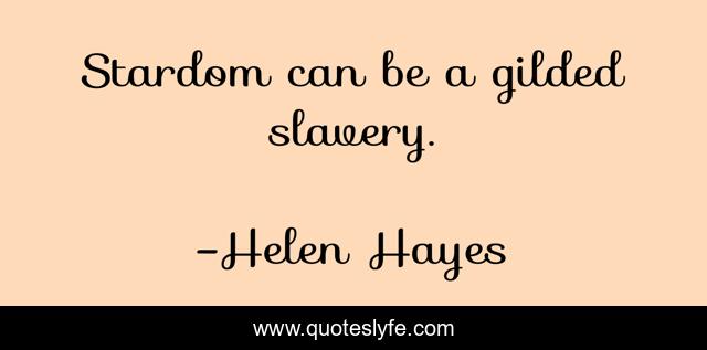 This page presents the quote "Stardom can be a gilded slavery.". Author of this quote is Helen Hayes. This quote is about gilded, stardom, slavery,.