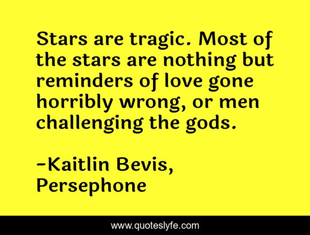This page presents the quote "Stars are tragic. Most of the stars are nothing but reminders of love gone horribly wrong, or men challenging the gods.". Author of this quote is Kaitlin Bevis, Persephone. This quote is about hades, myth, stars,.