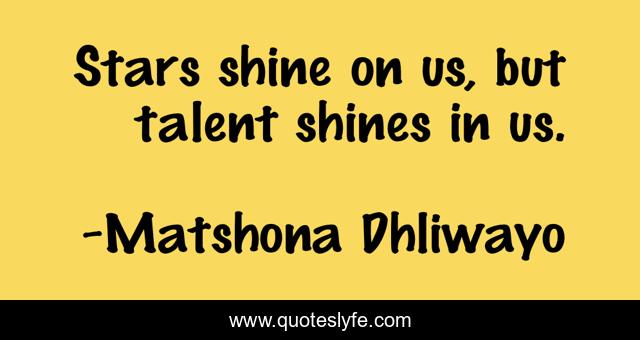 "Matshona Dhliwayo Quotes." Quoteslyfe.com, 2025. Mon. 08 Dec. 2025. <https://www.quoteslyfe.com/quote/Stars-shine-on-us-but-talent-shines-83128>.