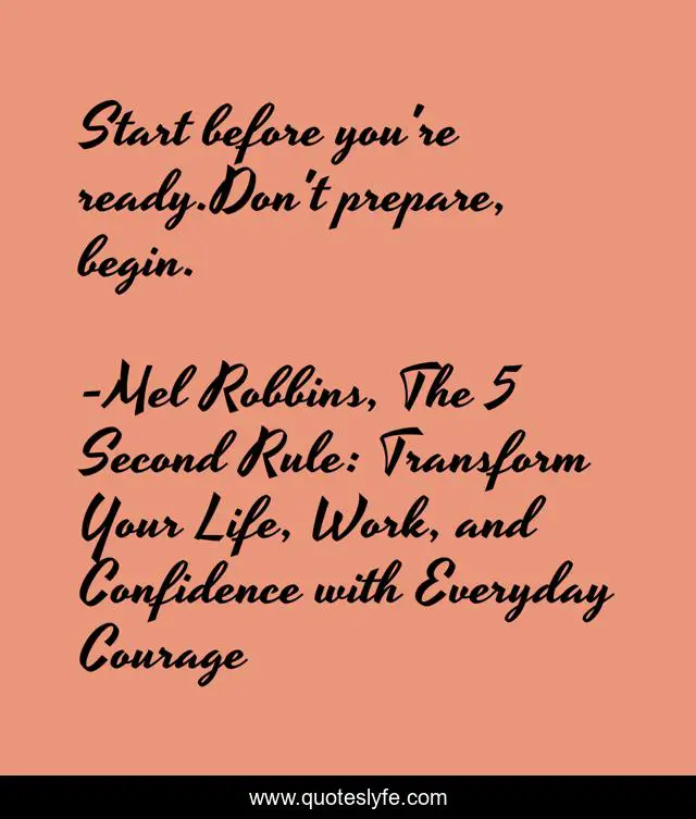"Mel Robbins, The 5 Second Rule: Transform Your Life, Work, and Confidence with Everyday Courage Quotes." Quoteslyfe.com, 2025. Mon. 08 Dec. 2025. <https://www.quoteslyfe.com/quote/Start-before-you-re-ready-Don-t-32560>.