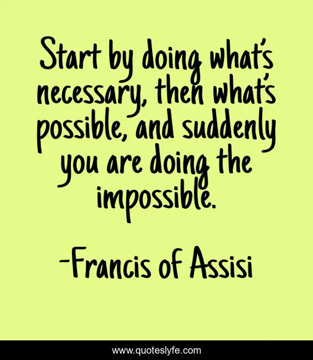 "Francis of Assisi Quotes." Quoteslyfe.com, 2025. Fri. 05 Dec. 2025. <https://www.quoteslyfe.com/quote/Start-by-doing-what-s-necessary-then-258046>.