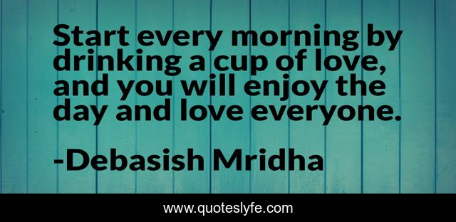 This page presents the quote "Start every morning by drinking a cup of love, and you will enjoy the day and love everyone.". Author of this quote is Debasish Mridha. This quote is about enjoy-the-day, love, how-to-start-the-morning, philosophy, debasish-mridha, quotes, inspirational, enthusiasm, debasish-mridha-m-d,.