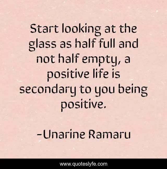 "Unarine Ramaru Quotes." Quoteslyfe.com, 2025. Sat. 06 Dec. 2025. <https://www.quoteslyfe.com/quote/Start-looking-at-the-glass-as-half-95414>.