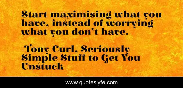 This page presents the quote "Start maximising what you have, instead of worrying what you don’t have.". Author of this quote is Tony Curl, Seriously Simple Stuff to Get You Unstuck. This quote is about desire, success, passionate, maximize-potentials, worry,.