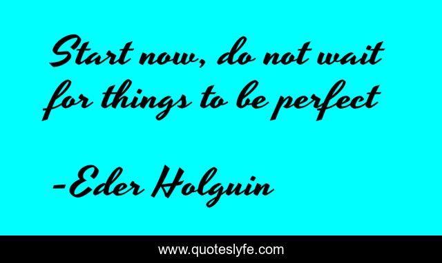 This page presents the quote "Start now, do not wait for things to be perfect". Author of this quote is Eder Holguin. This quote is about confidence, success, positive, motivational, optimistic, living-life-to-the-fullest,.
