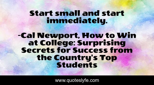 "Cal Newport, How to Win at College: Surprising Secrets for Success from the Country's Top Students Quotes." Quoteslyfe.com, 2025. Fri. 05 Dec. 2025. <https://www.quoteslyfe.com/quote/Start-small-and-start-immediately-157961>.