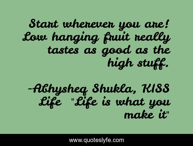 "Abhysheq Shukla, KISS Life "Life is what you make it" Quotes." Quoteslyfe.com, 2025. Fri. 05 Dec. 2025. <https://www.quoteslyfe.com/quote/Start-wherever-you-are-Low-hanging-fruit-81589>.