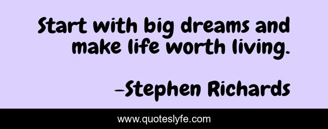 "Stephen Richards Quotes." Quoteslyfe.com, 2025. Sun. 07 Dec. 2025. <https://www.quoteslyfe.com/quote/Start-with-big-dreams-and-make-life-16201>.