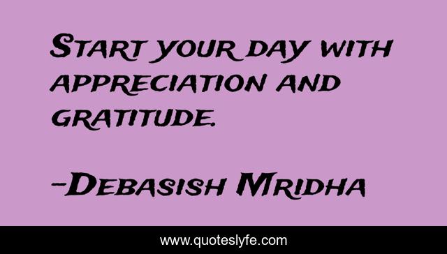 "Debasish Mridha Quotes." Quoteslyfe.com, 2025. Sun. 07 Dec. 2025. <https://www.quoteslyfe.com/quote/Start-your-day-with-appreciation-and-gratitude-75242>.