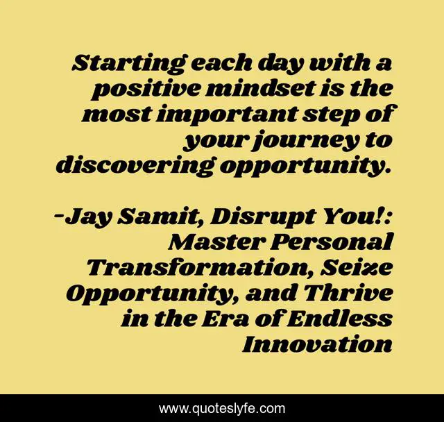 "Jay Samit, Disrupt You!: Master Personal Transformation, Seize Opportunity, and Thrive in the Era of Endless Innovation Quotes." Quoteslyfe.com, 2025. Fri. 05 Dec. 2025. <https://www.quoteslyfe.com/quote/Starting-each-day-with-a-positive-mindset-106500>.