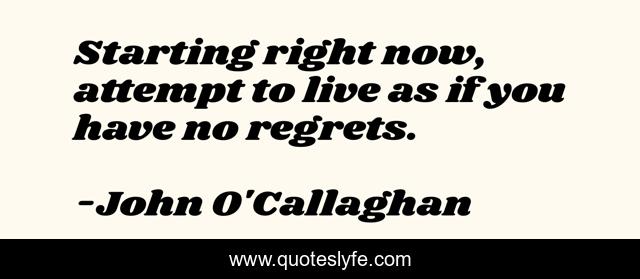 This page presents the quote "Starting right now, attempt to live as if you have no regrets.". Author of this quote is John O'Callaghan. This quote is about life, regret, live, moment, music, spontaneous,.