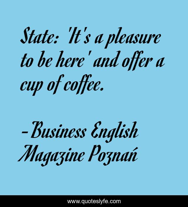 This page presents the quote "State: 'It's a pleasure to be here' and offer a cup of coffee.". Author of this quote is Business English Magazine Poznań. This quote is about pleasure, coffee, english,.