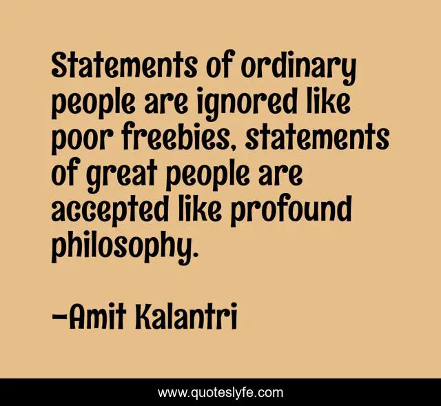 "Amit Kalantri Quotes." Quoteslyfe.com, 2025. Sun. 07 Dec. 2025. <https://www.quoteslyfe.com/quote/Statements-of-ordinary-people-are-ignored-like-99088>.