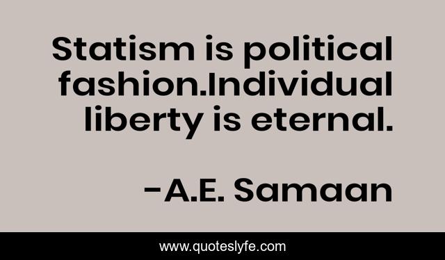 "A.E. Samaan Quotes." Quoteslyfe.com, 2025. Tue. 09 Dec. 2025. <https://www.quoteslyfe.com/quote/Statism-is-political-fashion-Individual-liberty-is-191122>.