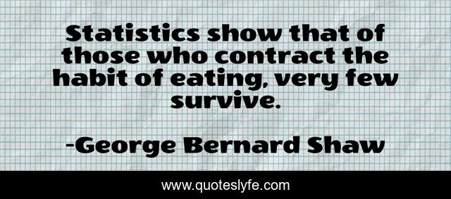 This page presents the quote "Statistics show that of those who contract the habit of eating, very few survive.". Author of this quote is George Bernard Shaw. This quote is about survive, statistics, eating,.