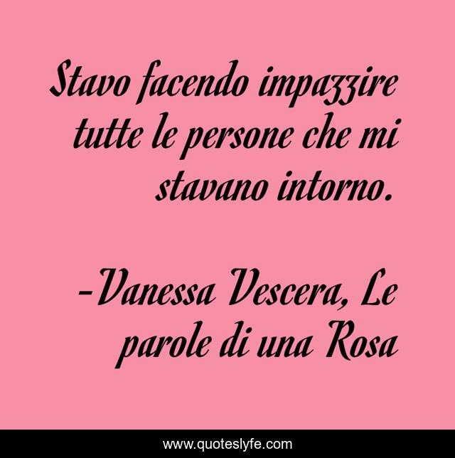 This page presents the quote "Stavo facendo impazzire tutte le persone che mi stavano intorno.". Author of this quote is Vanessa Vescera, Le parole di una Rosa. This quote is about quotes, book-lovers,.