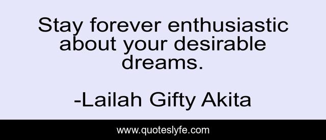 "Lailah Gifty Akita Quotes." Quoteslyfe.com, 2025. Fri. 05 Dec. 2025. <https://www.quoteslyfe.com/quote/Stay-forever-enthusiastic-about-your-desirable-dreams-19875>.