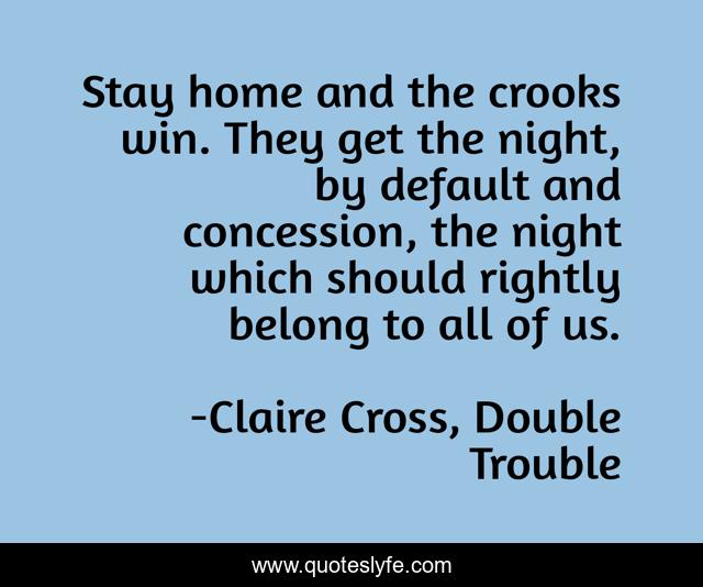 "Claire Cross, Double Trouble Quotes." Quoteslyfe.com, 2025. Sat. 06 Dec. 2025. <https://www.quoteslyfe.com/quote/Stay-home-and-the-crooks-win-They-193595>.