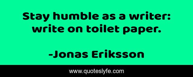 This page presents the quote "Stay humble as a writer: write on toilet paper.". Author of this quote is Jonas Eriksson. This quote is about humor, writing,.