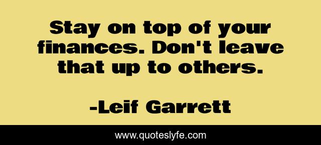 This page presents the quote "Stay on top of your finances. Don't leave that up to others.". Author of this quote is Leif Garrett. This quote is about leave, top, up,.