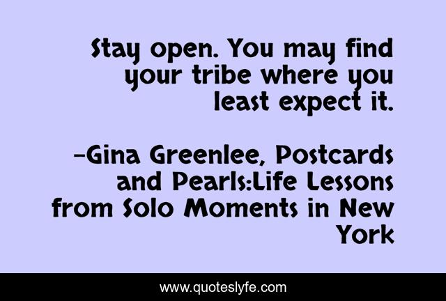 "Gina Greenlee, Postcards and Pearls:Life Lessons from Solo Moments in New York Quotes." Quoteslyfe.com, 2025. Fri. 05 Dec. 2025. <https://www.quoteslyfe.com/quote/Stay-open-You-may-find-your-tribe-249901>.