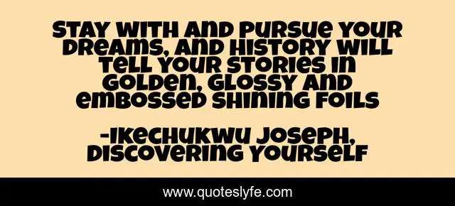 "Ikechukwu Joseph, Discovering Yourself Quotes." Quoteslyfe.com, 2025. Sun. 07 Dec. 2025. <https://www.quoteslyfe.com/quote/Stay-with-and-pursue-your-dreams-and-236337>.