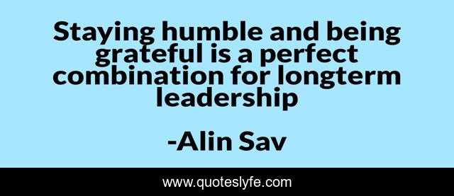 This page presents the quote "Staying humble and being grateful is a perfect combination for longterm leadership". Author of this quote is Alin Sav. .