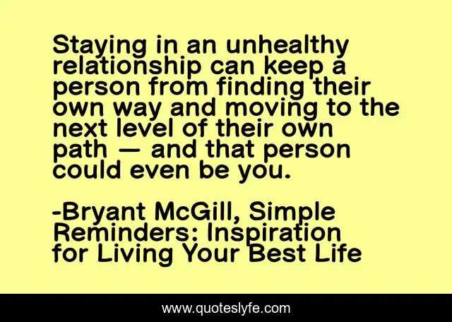 "Bryant McGill, Simple Reminders: Inspiration for Living Your Best Life Quotes." Quoteslyfe.com, 2025. Fri. 05 Dec. 2025. <https://www.quoteslyfe.com/quote/Staying-in-an-unhealthy-relationship-can-keep-198721>.