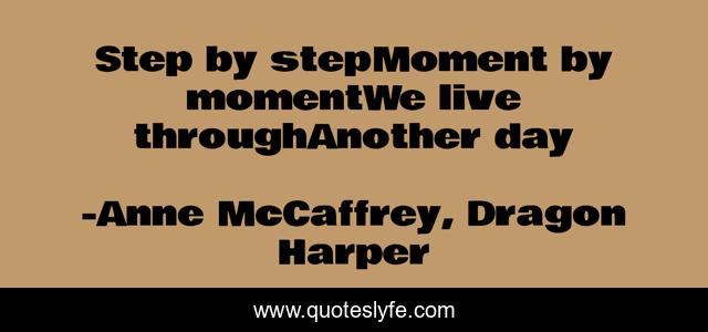This page presents the quote "Step by stepMoment by momentWe live throughAnother day". Author of this quote is Anne McCaffrey, Dragon Harper. .