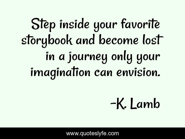 This page presents the quote "Step inside your favorite storybook and become lost in a journey only your imagination can envision.". Author of this quote is K. Lamb. This quote is about educate, read, imagination, book, inspirational, enthusiasm, teach,.