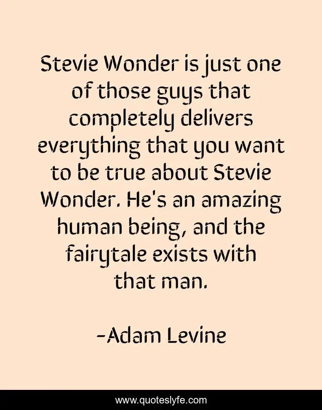This page presents the quote "Stevie Wonder is just one of those guys that completely delivers everything that you want to be true about Stevie Wonder. He's an amazing human being, and the fairytale exists with that man.". Author of this quote is Adam Levine. This quote is about be true, man,.