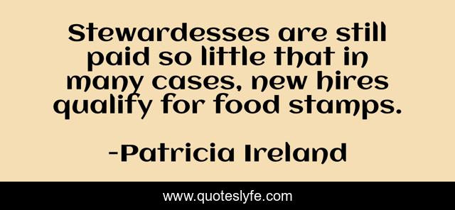 "Patricia Ireland Quotes." Quoteslyfe.com, 2025. Mon. 08 Dec. 2025. <https://www.quoteslyfe.com/quote/Stewardesses-are-still-paid-so-little-that-295632>.
