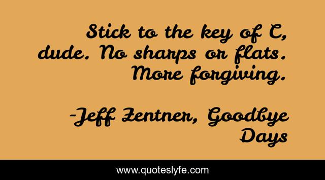 This page presents the quote "Stick to the key of C, dude. No sharps or flats. More forgiving.". Author of this quote is Jeff Zentner, Goodbye Days. .