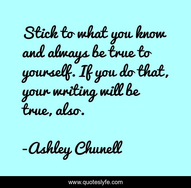 This page presents the quote "Stick to what you know and always be true to yourself. If you do that, your writing will be true, also.". Author of this quote is Ashley Chunell. This quote is about quote, ashley-chunell, true, writing,.