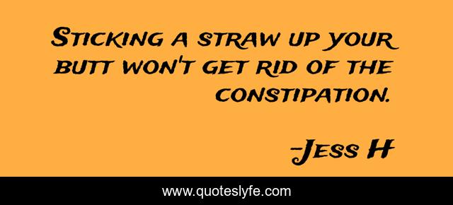 This page presents the quote "Sticking a straw up your butt won't get rid of the constipation.". Author of this quote is Jess H. This quote is about life, humor, philosophy, poop, inspirational, enthusiasm, religious,.