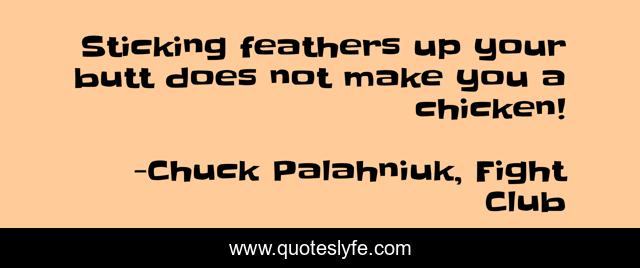 "Chuck Palahniuk, Fight Club Quotes." Quoteslyfe.com, 2025. Sat. 06 Dec. 2025. <https://www.quoteslyfe.com/quote/Sticking-feathers-up-your-butt-does-not-4216>.
