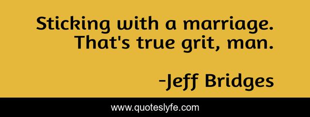 This page presents the quote "Sticking with a marriage. That's true grit, man.". Author of this quote is Jeff Bridges. This quote is about grit, true, man,.