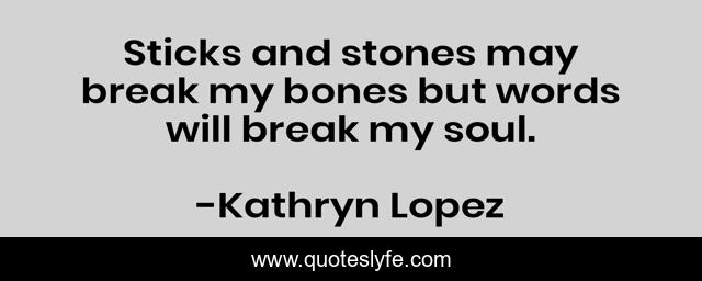 This page presents the quote "Sticks and stones may break my bones but words will break my soul.". Author of this quote is Kathryn Lopez. This quote is about bullying, sadness, depression,.