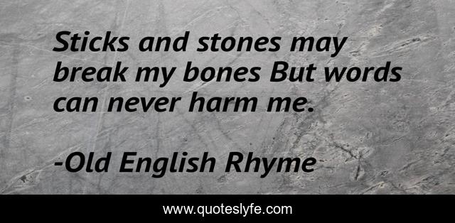 "Old English Rhyme Quotes." Quoteslyfe.com, 2025. Sat. 06 Dec. 2025. <https://www.quoteslyfe.com/quote/Sticks-and-stones-may-break-my-bones-278968>.
