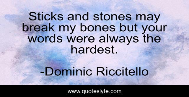 "Dominic Riccitello Quotes." Quoteslyfe.com, 2025. Mon. 08 Dec. 2025. <https://www.quoteslyfe.com/quote/Sticks-and-stones-may-break-my-bones-90137>.